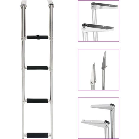 Doté d’une conception télescopique, cette échelle d’embarquement sera un article essentiel en plus de votre piscine, bateau et autre plate-forme de support. La conception télescopique distinctive garantit que l’échelle peut se replier rapidement et facilement, afin de vous aider à monter à bord en toute sécurité. Chaque marche comporte une bande de roulement antidérapante qui peut assurer la sécurité au maximum. Fabriquée en acier inoxydable à haute résistance, l’échelle de bateau offre une durabilité maximale et peut supporter un poids de 250 kg. Une sangle peut fixer les marches lorsqu’elle n’est pas utilisée. Les accessoires de montage sont inclus.