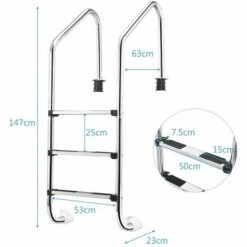 Hommoo Echelle De Piscine A 3 Echelons Acier Inoxydable 304 120 Cm