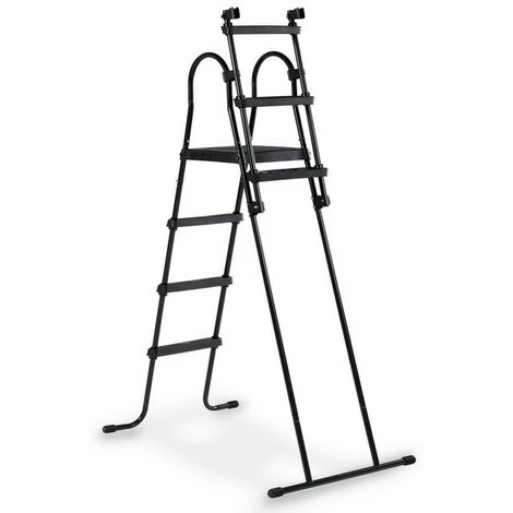 EXIT zwembadtrap voor framehoogte van 108-122cm – zwart De EXIT zwembadtrap voor zwembaden met een framehoogte tussen de 108-122 centimeter is een uitstekend hulpmiddel om op veilige wijze het zwembad in en uit te klimmen. De zwarte trap heeft een railing waaraan de kinderen zich vast kunnen houden en de treden zijn voorzien van anti-slip, waardoor ze niet kunnen uitglijden als de trap nat is. In het midden heeft de trap een platform, zodat de kinderen rustig over de rand van het zwembad kunnen stappen. En vanaf de buitenkant van het zwembad is de trap eenvoudig open te klappen, zodat de allerjongsten niet zomaar in het zwembad kunnen klimmen.