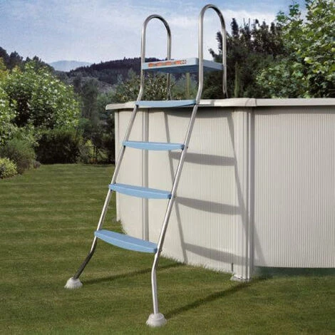 Échelle pour piscine en acier inoxydable, adaptée aux piscines hors-sol d’une hauteur de 1,20 m.Référence : AR11680Hauteur : 1,42 m2 x 4 marches