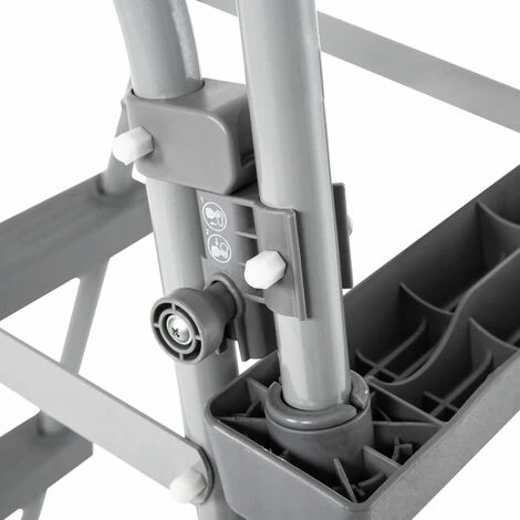 –Le cadre en acier tubulaire robuste est peint à l’extérieur. Une fois assemblée, l’échelle a une charge solide de 150 kg.