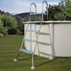 Gré Echelle Pour Piscine Hors-sol – H142 Cm – Grise Avec Plateforme