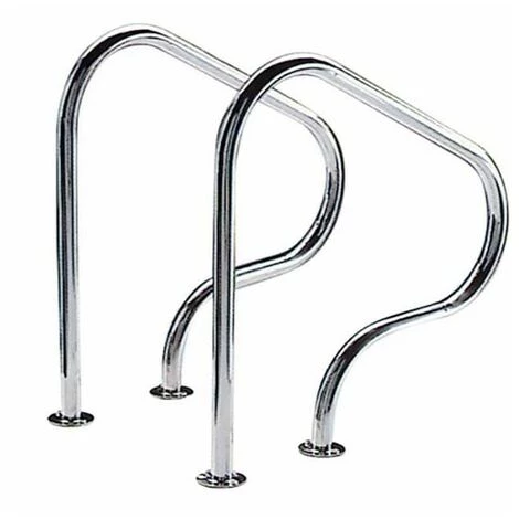 Escalera para piscinas con rebosadero, que incorpora la curvatura con radio variable en el tramo de agarre dando un aspecto más moderno y atractivo.