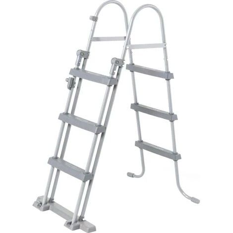 Fabriquée en acier et avec un revêtement en PVC bleu, cette piscine est durable et robuste. Elle est également facile à installer et à démonter, ce qui est pratique. L’échelle de piscine à 4 marches Bestway Flowclear peut aider les nageurs à entrer et sortir dans et de la piscine de façon sécuritaire et pratique. Cette échelle a un cadre métallique résistant à la rouille. Les marches en plastique robustes et antidérapantes sont fermement fixées au cadre, ce qui permet aux nageurs d’entrer dans la piscine ou d’en sortir en toute sécurité. En outre, il y a une plate-forme avec des plaques de protection et 2 poignées fermes. Le jeu de marches situé à l’extérieur de l’échelle peut être replié pour empêcher l’utilisation de l’échelle par les enfants. En outre, l’échelle de sécurité pour piscines convient aux piscines hors sol d’une hauteur maximale de 107 cm.